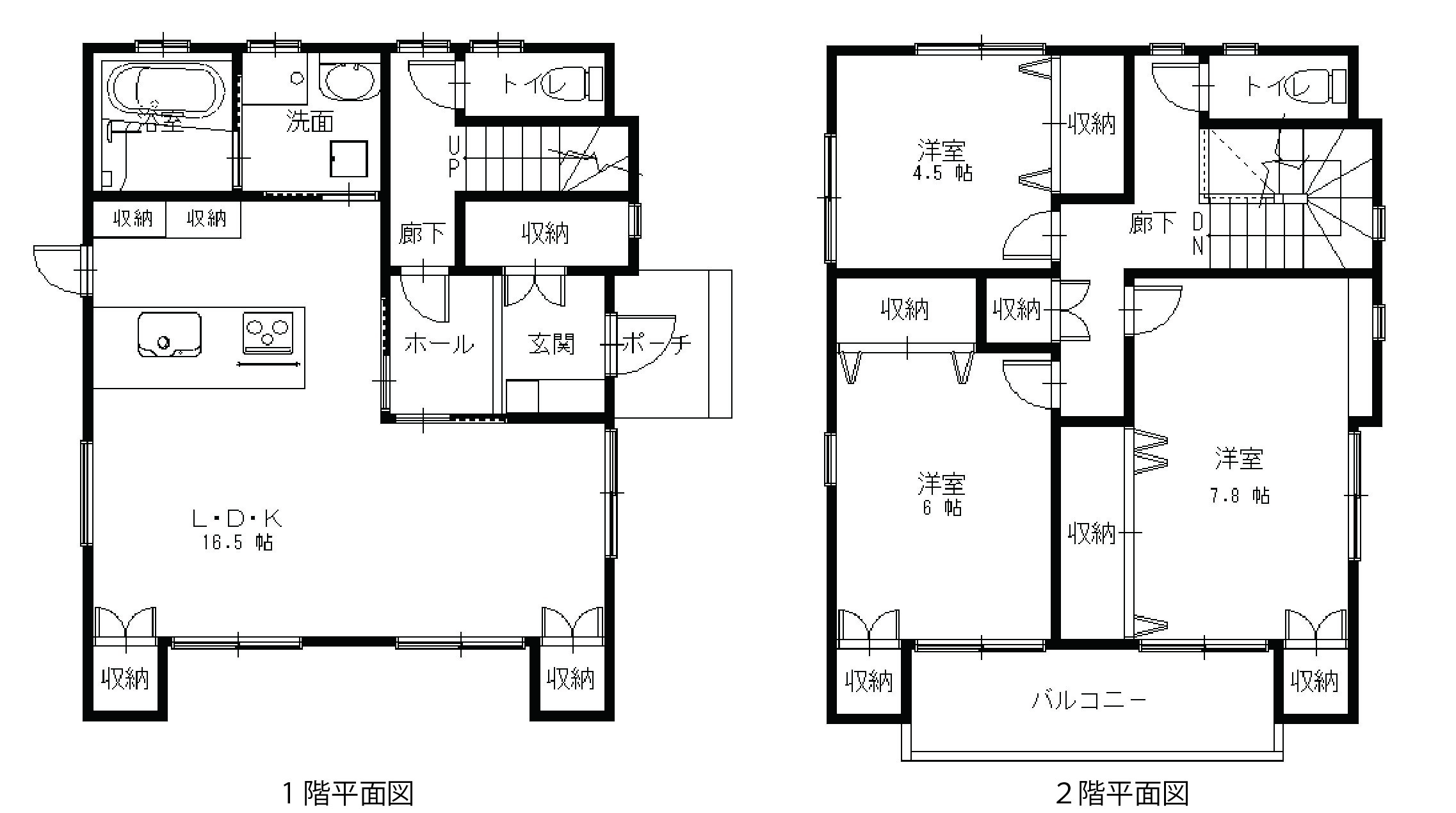 | 建物面積 | 1F:48.58㎡ 2F:49.13㎡ 延べ床面積:97.71㎡ |